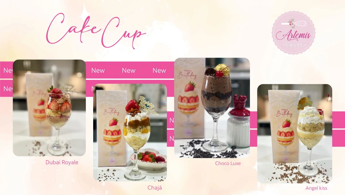 Descubre lo nuevo de Artemis Cakes: nuestros Cake Cups. Más que un postre, es una experiencia única desde el primer instante. Deléitate con sabores exclusivos y una presentación espectacular, cuidadosamente diseñada para sorprenderte desde la caja hasta el último bocado.